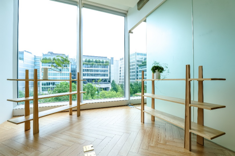 《遠山架》的設計正體現了這種態度:它摒棄了多余的裝飾與固定件,以最少的加工實現最大的結構表現。構件間的接口均以“自支撐”原理完成,確保在廢棄后能100%分解回收。這不僅是形式選擇,更是對“可延續使用”這一核心理念的物質化表達。